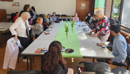 An diesem Tag wurde auch das neu herausgegebene Rezeptheft „Gerichte aus den Herzen der Frauen“ vorgestellt und ausgelegt. Dieses Heft vereint traditionelle Rezepte, weitergegeben von Frauen aus Iran, Irak, Syrien, Afghanistan und Palästina. Aus Deutschland wurde das Rezept für einen Zwetschgenkuchen beigesteuert. Gestaltet wurde das Büchlein von Hala Arab, die regelmäßig am Frauencafé teilnimmt und sich hier engagiert. Die Rezepte sind auch kleine kulturelle Dokumente: Sie machen sichtbar, wie eng Kochen und gemeinsames Essen mit Nähe, Gemeinschaft und Herkunft verbunden ist.