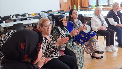 Im Rahmen der interkulturellen Tage Marzahn-Hellersdorf hat das Frauencafé IMAL des Immanuel Beratungszentrums Marzahn am 23. September seine Türen unter dem Motto „Willkommen Vielfalt“ geöffnet und zu Musik, Tanz und Dialog und gemeinsamem Essen eingeladen. 25 Frauen folgten der Einladung und kamen zum Fest. Wir hatten ein vielfältiges Büfett, zu dem jede der Frauen etwas beigetragen hat. Einige der Frauen spielten Daf und Darbuka (Trommeln), andere klatschten den Rhythmus dazu und sangen. Es wurde auch zu Musik aus den jeweiligen Herkunftsländern getanzt. Unsere ehrenamtlich im Frauencafé tätigen Frauen trugen mit Gesang, begleitet von einer Mundharmonika, zur Unterhaltung bei. Die Stimmung war ausgelassen, alle waren sehr bewegt und voller Freude.
