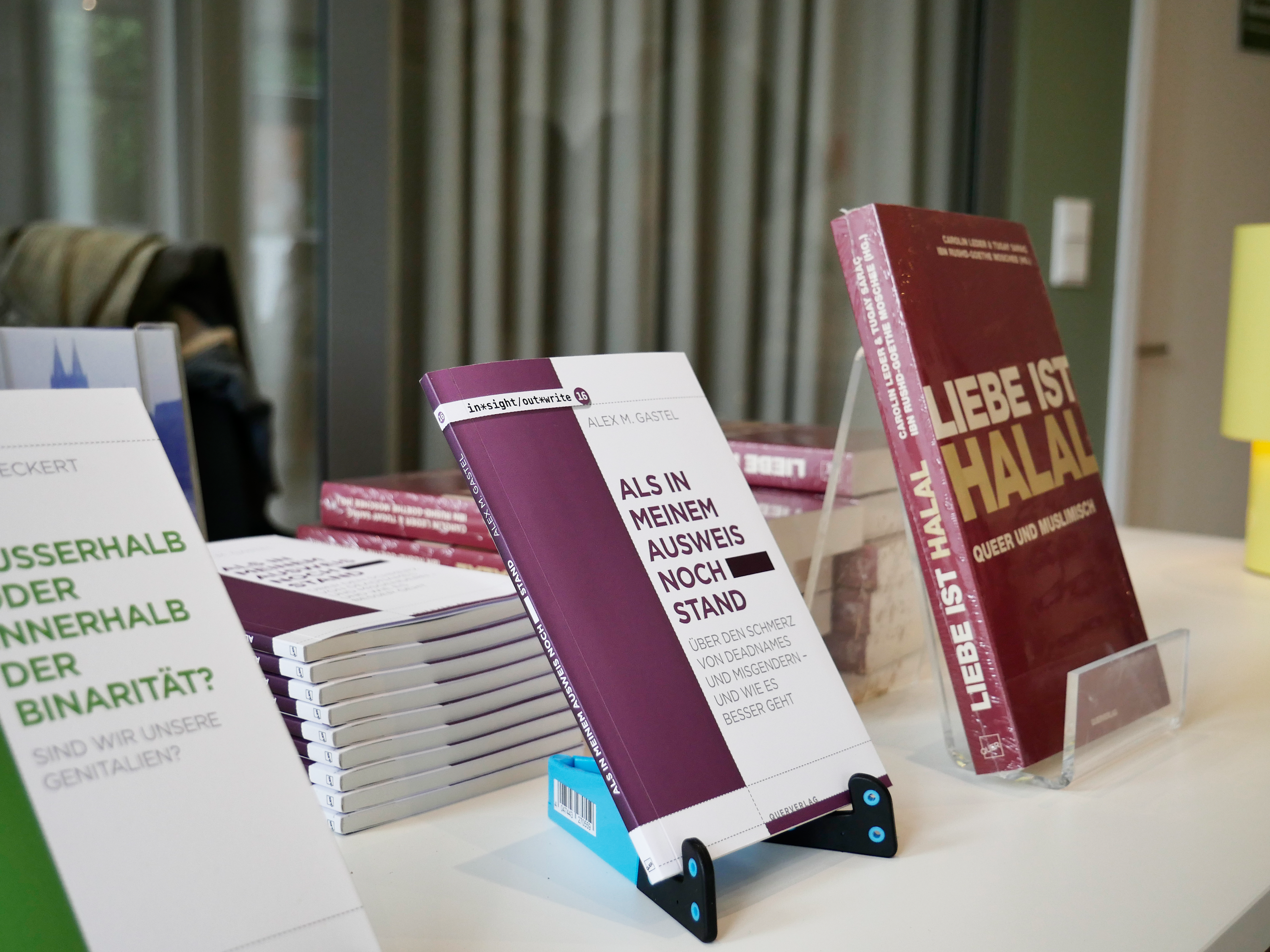 Am Büchertisch gab es Gelegenheit, einen Blick in die Bücher der beiden Autor*innen wie auch von Nora Eckert zu werfen.